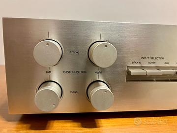 Il Luxman L-3 è un amplificatore integrato vintage apprezzato per il suo design elegante e originale, con connettori nascosti sotto il telaio per un look pulito, e la capacità di pilotare doppie coppie di diffusori, ideale per sonorizzare ambienti ampi, offrendo un suono raffinato tipico del marchio giapponese, con controlli di tono e filtri per l'equilibrio sonoro. Le recensioni sottolineano la sua qualità costruttiva e la cura estetica, pur essendo un modello storico con un'impostazione orientata al suono analogico di alta fedeltà. Potenza 42 Watt per Canale Made in Japan- Come nuovo - Perfettamente Funzionante.