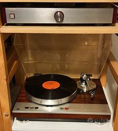 Realizzato da Micro Seiki (Micro Seiki SX 1500) per Luxman, il PD-310 trasuda qualità, INTROVABILE con tutti gli accessori a corredo. È dotato del meraviglioso braccio Audio Technica AT 1100 insensibile alle risonanze che offro in omaggio. Splendida finitura in palissandro e alluminio, base 'intelligente' per ospitare bracci da 9" a 12".Ha uno stroboscopio integrato, velocità 33 - 45 giri come MicroSeiki SX 1500. Il Giradischi è dotato di alimentazione esterna che è anche il sistema di aspirazione del disco (come Micro Seiki SX1500) sul pesante piatto e funziona perfettamente con un suono ricco, dettagliato e dinamico. Ciò consente di attrarre il vinile il quale diventa un corpo unico con il piatto e ciò significa che anche una piccola ondulazione risulterà spianata. È possibile ovviamente non utiluzzare questa ulteriore tecnologia. Se stai cercando un piatto dal suono eccezionale e dall'aspetto elegante, eccolo qui. Su questo giradischi ci sarebbe troppo da dire perciò dirò solo che è bello e suona bene anche i dischi ondulati. Fornisco il Kit origiale composto da quella ruota che si vede in foto che serve per pressare l'eventuale disco ondulato, il tappetino e il tappetino ausiliario che scansa i canali-ventosa per utilizzarlo senza utilizzare l'aspirazione. Peso totale 23 kg 490×185×390 ovviamente non è possibile spedirlo. Per conoscere moltissimi dettagli chiamare il 348 4322442