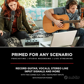Podcast, registrazione, streaming dal vivo, un'interfaccia per tutto – Scheda audio USB per Mac o PC con risoluzione audio a 48 kHz e registrazione fedele di qualsiasi sorgente audio Interfaccia M Audio versatile e pronta a tutto - Registra chitarre, voci o sorgenti audio di linea con due ingressi combo XLR/Line/Strumento dotati di alimentazione phantom Tutto ciò che serve per un monitoraggio senza problemi – Uscita cuffie da 1/4” e uscite stereo da 1/4" per la massima flessibilità; interruttore USB/Direct per il monitoraggio a latenza zero Sfrutta al massimo i microfoni - Preamplificatore trasparente Crystal, a garanzia di un suono ottimale da tutti i tuoi microfoni a condensatore Che tu sia un podcaster o un creatore di beat, adorerai questo pacchetto software: MPC Beats con strumenti virtuali, effetti plugin e 2 GB di contenuti con libreria di strumenti F9 e Revalver