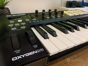 M-Audio Oxygen 25 MKV – Tastiera MIDI Controller USB a 25 Note con Pad Beat. OTTIMA tastiera poco ingombrante. Senza un graffio. Attacco USB compatibile con qualsiasi programma di produzione musicale. Prezzo 40€