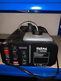 Macchina del fumo Karma 1500W funzionante in DMX ma anche con radiocomando incluso. Serbatoio da 2.5 litri. Caldaia intasata causa scarso utilizzo per il resto elettronica ben funzionante.