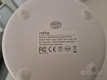 Macchina rumori bianchi marca ROFFIE perfettamente funzionante e integra. Comprende 6 modalità di suono (onde mare, aria, temporale, phone, battito cardiaco e rumori della foresta) ognuno di essi in 3 modalità differenti. La macchina ovviamente è provvista anche di luce calda che può funzionare con i suoni oppure senza suoni rimanendo accesa solo la luce. Ovviamente ci sono i tasti per alzare e diminuire il suono, il tasto per cambiare il suono , quello per ripeterlo ad oltranza e quello per spegnere il tutto. Funziona a corrente. Macchina praticamente NUOVA.