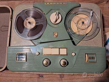 Vendo splendido registratore a bobine vintage Philips modello EL 3520, un vero pezzo di storia dell'elettronica degli anni '50. L'oggetto si presenta in ottime condizioni estetiche, completo della sua valigetta originale e, dettaglio rarissimo, del suo manuale d'istruzioni originale dell'epoca in italiano. + 5 bobine come da foto.