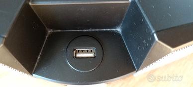 L'altoparlante ha la funzione di riprodurre musica da un dispositivo esterno collegato ad esso (chiaramente non fornito) che può essere connesso sia tramite un cavetto AUX (per esempio dall' uscita cuffie di un cellulare o di un lettore mp3), oppure tramite l'ingresso USB (ad esempio connettendo una pen drive, cosa che però non ho mai provato e che quindi non garantisco).