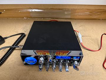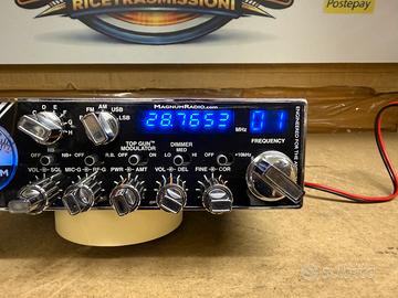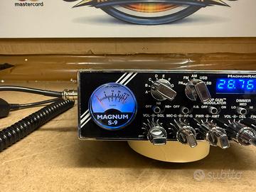 Ricetrasmettitore Magnum S-9 radio ben tenuta e perfettamente funzionante SI ACCETTANO PERMUTE Ricetrasmettitore Mobile Amatoriale per i 10 Metri (28 Mhz) - 50 Watt SSB - 25 Watt AM/FM -- NUOVA VERSIONE RIVISTO E MIGLIORATO -- Frequenzimetro a 6 cifre in SSB e 5 cifre in AM/FM Interruttore per spegnere il Frequenzimetro Roger Beep Doppia presa microfonica 4 pin (a destra e a sinistra) Potenza d'uscita regolabile TURBO™ Digital Echo con doppio controllo (volume e ritardo) TOP GUN™ Modulator - Un'esclusiva Magnum! Incrementa notevolmente la modulazione e i Watt di picco in AM Con 1 Watt di portante arriva anche a 25 Watt modulati! 100% di modulazione Interruttore sul frontale per l'esclusione TOP GUN'" Compressor - Un esclusiva Magnum! Compressore che incrementa l'audio in trasmissione Eccezionale chiarezza dell'audio in ricezione Display dei canali e illuminazione dello smeeter di colore BLU Tre livelli di luminosità selezionabili Luce rossa lampeggiante nello smeeter in caso di SWR alto (funzione disinseribile) Largo e leggibile strumento S/RF Meter di forma circolare che ricorda gli RTX più vecchi Luce rossa fissa nello smeeter indicate la trasmissione Commutatore +10 Khz per i canali alfa MIC & RF Gain regolabili Noise Blanker / ANL Inclusa nella confezione ulteriore mascherina Old Glory' con bandiera americana disegnata Clarifier con Fine & Coarse regolabili per RX & TX Disponibile anche versione NITRO con manopole trasparenti illuminate internamente di BLU (vedi foto