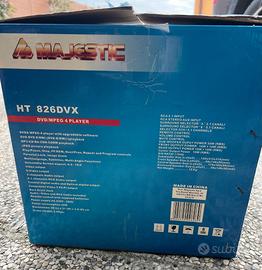 Sistema Home Theatre con lettore DVD/MPEG4 e un set di autoparlanti ancora imballato mai utilizzato.