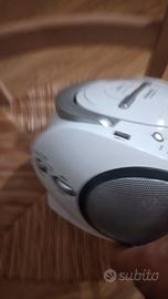 radio portatile anche a batteria CD, anche MP3 e audiocassette a nastro. È da fissare l'antenna e da sistemare il volume perché si alza e si abbassa da solo, cose semplici che può fare un radioamatore con un minimo di esperienza.