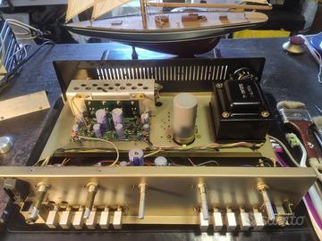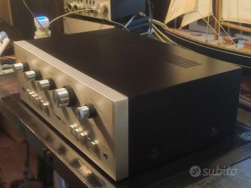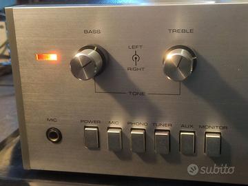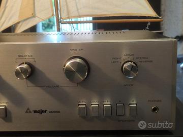 Ciao, non pretendo di conoscere l'hi-fi ma sono tanti anni che bazzico questo meraviglioso mondo e qualcosina ho appreso: perciò sostengo che se un marchio non poteva permettersi un ufficio marketing mostruosamente efficiente e che promuovesse i propri prodotti in maniera capillare a livello mondiale aveva solo un altra strada... pochi prodotti costruiti BENE e questo mio amplificatore a transistor Major AS-5000 ne rappresenta la chiara dimostrazione. L'estetica. Pulita, lineare, nessun fronzolo: frontale in acciaio di ottimo spessore, scritte che dopo cinquant'anni si leggono benissimo, tutto ciò che può servire a un amante della buona Musica e forse qualcosina in più... il controllo dei toni alti e bassi separati per ciascun canale per esempio così come l'interruttore posteriore per selezionare (relativamente all'ingresso Phono) phonorivelatori magnetici o ceramici e tutte le manopole e i pulsanti sono ricavati dal pieno, plastica zero. Anche lo chassis è in robustissimo metallo verniciato a fuoco e di ottimo spessore. Funzionalità PERFETTA! Eroga 40 watt (8 ohm) per ciascun canale che divengono poco più di 50 pilotando diffusori con 4 ohm di impedenza. Come suona. La definizione non è straordinaria ma non lo sto proponendo come ampli audiophile e magari i tuoi diffusori sono meglio dei due scarabocchi che utilizzo in laboratorio... comunque la separazione tra i due canali e netta, gli alti si sentono senza infastidire e i bassi sono una presenza fantastica e profonda... se poi a basso volume inserisci il loudness ti arriva una calcio di Mulo nella pancia: è veramente stratosferico. Altra nota, le regolazioni dei toni alti e bassi hanno un'escursione incredibile: dal piatto totale con i toni azzerati all'enfasi totale (fin troppo per il mio modo di intendere la Musica) se massimizzati. Grazie per l'attenzione, buona vita e buona Musica a te. Andrea. Spedisco con corriere.