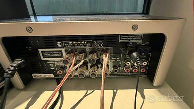 Vendo Marantz modello M-CR502, ottimo come amplificatore anche! Il lettore cd a volte salta....forse è da pulire....USB perfettamente funzionante. Caratteristiche : Punti salienti e caratteristiche: •Elegante ricevitore CD in formato compatto: L'M-CR502 della serie "Melody Music" combina eccellenti prestazioni HiFi con un design elegante. ti abitativi moderni. •Potenti prestazioni dell'amplificatore: il sistema eroga ben 2 x 50 watt (a 6 ohm). •USB anteriore per supporti digitali: I file MP3 e WMA possono essere riprodotti direttamente da chiavette USB o lettori portatili tramite la porta USB •Gestione versatile degli altoparlanti: L'M-CR502 ha quattro canali dell'amplificatore di potenza. Ciò consente il funzionamento di due coppie separate di altoparlanti (Zone A e B) con controllo del volume individuale o modalità di bi-amplificazione per una singola coppia di altoparlanti per ottimizzare la precisione del suono nelle frequenze alte e basse. •Radio RDS •Espandibilità tramite M-XPort: è possibile collegare accessori opzionali, come il ricevitore Bluetooth RX101, per trasmettere la musica in modalità in wireless dallo smartphone al sistema. Connessioni: •1 porta USB (anteriore – per la riproduzione MP3/WMA) •1 ingresso AUX (jack anteriore da 3,5 mm per lettori mobili) •2 ingressi audio analogici (posteriore – stereo Cinch/RCA) •1 uscita audio analogica (stereo RCA/RCA) •1 x Pre-Out subwoofer (per il collegamento di un subwoofer attivo) •1 x M-XPort (per accessori opzionali come l'adattatore Bluetooth) •4 terminali per altoparlanti (terminali a vite per A e B/biamplificazione) •1 uscita per cuffie (3,5 mm, anteriore) •1 collegamento per antenna (FM/AM) Massa: Larghezza x altezza x profondità: 280 x 111 x 302 [mm] Peso: 4,2 kg