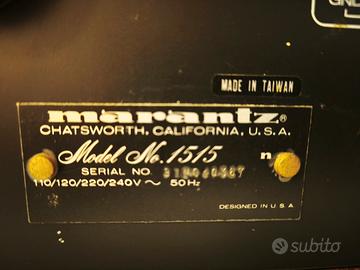 Vendo amplificatore Marantz 1515 in perfette stato estetico e di funzionamento. Vendo a prezzo ridotto in quanto NON FUNZIONANO le luci dei vu meter. Specifiche Gamma di sintonizzazione: FM, MW Potenza di uscita: 15 watt per canale su 8Ω (stereo) Risposta in frequenza: da 20 Hz a 20 kHz Distorsione armonica totale: 0,08% Fattore di smorzamento: 25 Sensibilità di ingresso: 2,8 mV (MM), 180 mV (linea) Rapporto segnale/rumore: 72 dB (MM), 80 dB (linea) Uscita: 500 mV (linea) Semiconduttori: 5 circuiti integrati, 29 transistor, 19 diodi, 1 FET Dimensioni: 440 x 137 x 357 mm Peso: 9 kg