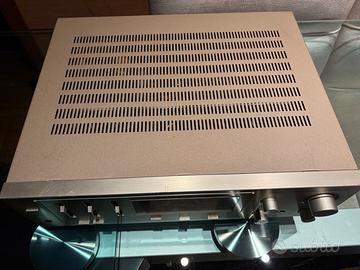 Davvero in ottime condizioni, revisionato, funziona perfettamente Cavo alimentazione revisionato Suono caldo Marantz, 50 W belli profondi, gestisce 2 phono in contemporanea Vero affare Euro 150,00 non trattabili (20-30% piu basso valore mercato) Cambio per upgrade a modello superiore Il Marantz PM 450 è un amplificatore stereo integrato prodotto in Giappone tra il 1981 e il 1984. Questo modello appartiene alla cosiddetta era "post-classic", successiva all'acquisizione di Marantz da parte di Philips nel 1980. Caratteristiche Principali Design Distintivo: Presenta una finitura in alluminio spazzolato, spesso nel ricercato colore "Champagne". Controlli a Cursore: A differenza dei modelli precedenti con manopole rotanti, il PM 450 utilizza cursori (slider) per la regolazione di bassi, medi e alti. Funzione "Party Amp": È noto per la sua capacità di gestire due giradischi contemporaneamente, con un cursore fader frontale dedicato per miscelare le due sorgenti Phono. Indicatori LED: Include un misuratore di potenza a LED rettangolari rossi per monitorare i livelli di uscita. Specifiche Tecniche Parametro Dettaglio Potenza di Uscita50W per canale su 8Ω (RMS) / 60W su 4Ω Risposta in Frequenza10Hz - 50kHz Distorsione Armonica (THD)0.05% Fattore di Smorzamento75 Ingressi2 Phono, Aux, Tape, Microfono con mixing PesoCirca 6.5 kg Considerazioni per l'Acquisto o il Restauro Il PM 450 è apprezzato per il suo suono caldo e dinamico, tipico degli apparecchi degli anni '80