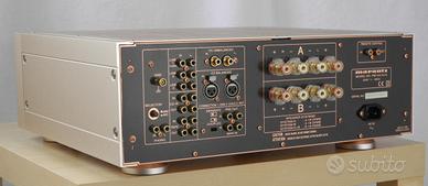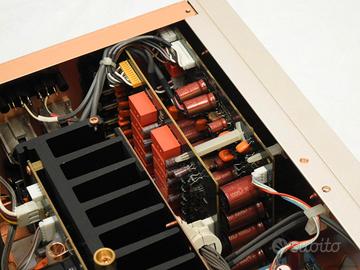 Amplificatore Marantz PM14MK ll KI con l'imballo originale Potenza di uscita nominale (da 20 Hz a 20 kHz, pilotaggio simultaneo a 2 canali): 100 W x 2 (carico 8 Ω) 160 W x 2 (carico 6 Ω) 200 W x 2 (carico 4 Ω) Distorsione armonica totale (da 20 Hz a 20 kHz, pilotaggio a 2 canali, carico 8 Ω): 0,01% Distorsione di modulazione incrociata (SMPTE): 0,01% Larghezza di banda in uscita (carico 8 ore, 0,04%): da 10 Hz a 60 kHz Risposta in frequenza (CD, SORGENTE DIRETTA): da 5 Hz a 60 kHz, +0/–1 dB Fattore di smorzamento (carico 8 ore, da 20 Hz a 10 kHz): 120 Sensibilità/impedenza di ingresso: PHONO (MC): 290 µV/100 Ω PHONO (MM): 2,6 mV/47 kΩ LIVELLO ALTO: 280 mV/10 kΩ INGRESSO PRINCIPALE: 1,8 V/100 kΩ Tensione/Impedenza di uscita: Uscita PRE: 1,8 V/250 Ω Ingresso PHONO massimo consentito (1 kHz): MC: 11 mV MM: 100 mV Deviazione RIAA (da 20 Hz a 20 kHz): ±0,2 dB Rapporto segnale/rumore (rete IHF A, ingresso in cortocircuito): PHONO (MC): 76 dB PHONO (MM): 90 dB LIVELLO ALTO: 110 dB Controllo tono: BASSI (100 Hz): ± 8 dB ALTI (10 kHz): ± 8 dB Tensione di alimentazione: 230 V CA, 50 Hz Consumo energetico: 300 W Dimensioni (L x A x P): 458 x 166 x 464 mm Peso: 23 kg Accessori: Telecomando (RC-17PM): 1 Dimensioni (L x A x P): 44 x 239 x 17,5 mm Peso: 189 g