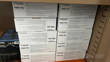 Marantz PMD 706 registratore audio a 6 canali per fotocamere DSLR nuovo aperto dalla scatola solo per fare le foto (disponibili 10 unità di cui 9 ancora sigillati) Euro 220 cad; Marantz PMD 602 A nuovo aperto dalla scatola solo per fare la foto euro 80. Vendita in blocco (11 pezzi) Euro 1900. Pagamento solo contanti o con bonifico bancario (no tuttosubito)