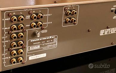 Dotato di doppio stadio phono per giradischi (possibile collegare contemporaneamente due diversi giradischi oppure un giradischi con doppio braccio e due testine differenti…..magari una MC ed una MM….IL TOP!!!!). Infinite regolazioni di accoppiamento a testine MC ed MM. Possibilità tramite selettore di selezionare equalizzazione o RIAA oppure RIAA/IEC. Selettore MC / MM. Doppia uscita pre amplificata !!! DOPPIA REGOLAZIONE PER OGNI CANALE DELLA GAMMA BASSA ED ALTA!!! Doppio LOUDNESS! Dotato inoltre di uscite ed ingressi per processori / Equalizzatori esterni. Suono spettacolare con medio alta dettagliata ma allo stesso tempo calda…..gamma bassa controllatissima e possente. Tutti i connettori RCA sono di altissima qualità e placati oro. PERFETTO, come appena uscito dalla fabbrica. TRA I MIGLIORI PREAMPLIFICATORI MAI COSTRUITI DA MARANTZ. OCCASIONE UNICA A QUESTO PREZZO ED IN QUESTE CONDIZIONI!!! TOTALMENTE ORIGINALE!!! Foto reali dell’ oggetto in vendita!!! Accetto eventualmente anche piccole permute parziali da valutare assieme telefonicamente! No messaggi! Se interessatil lasciare numero telefonico.
