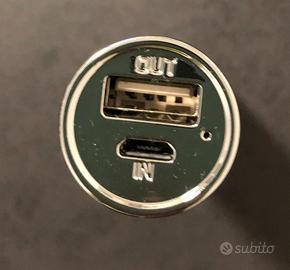 Marca: Puro. Accessorio: power bank Icon. Capacità: 2.200 mAh. Colore: grigio/argento. Completa di n. 2 cavi di collegamento. Completa di custodia in tessuto con lacci. Power bank universale (adatta a quasi tutti gli smartphone sul mercato). Molto pratica perché di dimensioni compatte, può essere portata ovunque (dentro borse, zaini, ecc.), per avere sempre a disposizione una ricarica di emergenza. Design molto curato. Nuova mai utilizzata. E' stata provata ed è perfettamente funzionante. Sulla custodia c'è qualche traccia di sporco che può essere rimossa lavandola.
