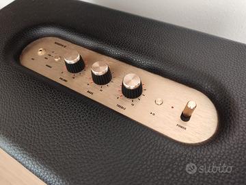 Vendo per passaggio a diffusori passivi altoparlante Marshall Woburn II. Potenza complessiva di 110W, connettività Bluetooth 5.0 con tecnologia aptX, RCA e jack audio da 3.5. Acquistato a settembre 2024. No spedizione. Prezzo non trattabile