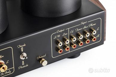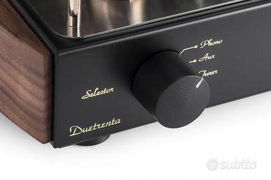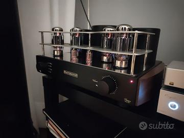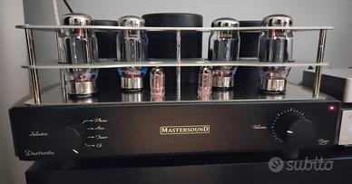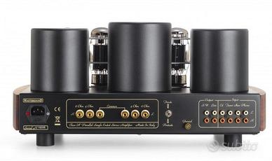 Amplificatore integrato valvolare di grande pregio MasterSound Duetrenta (modello attuale) acquistato nuovo a novembre 2024 in condizioni pari al nuovo. Valvole originali. Circuitazione “Parallel Single Ended in Class A” 2 x 33 W a Pentodo. Valvole: 2 ECC802-4 KT 120, INPUT: 3 Line, 1 Phono MM, Uscita Pre, Line Out Parallel Single Ended in Classe “A” Potenza: 2 x 33 Watt configurazione a tetrodo. Ingressi: 3 Linea + Phono MM Uscite: 1 Linea (fissa) + 1 Preamp. Uscite altoparlanti: 4 – 8 Ohms. Trasformatori di uscita: Mastersound. Imballo originale, manuali, cavo di alimentazione e Telecomando in dotazione. Dimensioni: 49 x 33 x 24 cm. Peso: 25 Kg.