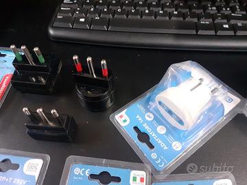 Vendo materiale elettrico tutto in blocco. _ 28pz prese 10A bianca e nera _1pz presa da 16/10A _13 pz spina 10A bianca e nera _8 pz spina 16A bianca e nera _9 pz spina salvaspazio 10A _4 pz adattatori 16A _2pz prese volanti nere schuko 16A _3pz portalampada E27 conf. da 2 pz _23 pz portalampada E 14 conf. 2 per _10 pz adattatori multiplo 10A + 3 prese nera 10A _8pz adattatori multiplo 10A+ 3 prese bipasso 16/10A _5pz adattatori multiplo 16A + 2 prese bipasso 16/10 _3pz adattatori spina 16 A +1 presa bipasso 16/10A _1 adattatore spina 10A +4 prese 10 A _108 pz adattatore schuko 16A Totale 226 pezzi