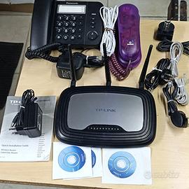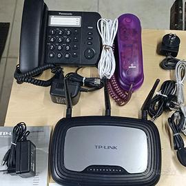 Materiale vario : telefoni analogici Panasonic KS-TS520EX e Brondi, modem router TpLink dual band wireless con relativi accessori per collegamento e alimentazione elettrica. Trasformatori varie tipologie e voltaggio - per portatile asus mod. PA1750-29 N 75W - e HP, a voltaggio variabile con relativi spinotti di collegamento, ecc . cavetteria varia . Il tutto come meglio si vede in foto. VENDO TUTTO IN BLOCCO
