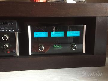 MCINTOSH PERFETTO 4 ANNI PRE E AMPLIFICATORE l'amplificatore MC207 home theater a 7 canali garantisce un'esperienza cinematografica straordinaria a casa tua, erogando 200 watt di potenza per ciascun canale in sistemi home theater 7.1. Può essere utilizzato anche in configurazioni 5.1, con i 2 canali rimanenti destinati all'alimentazione di una seconda zona in modalità stereo. La tecnologia esclusiva Dynamic Power Manager® (DPM) di McIntosh consente all'MC207 di erogare la sua piena potenza sia su diffusori da 4 che da 8 Ohm, rendendolo compatibile con un'ampia gamma di altoparlanti per home theater. PRE AMPLIFICATORE MX120 Specifiche audio Risposta in frequenza Sinistro, Centrale, Destro, Surround sinistro, Surround destro, Indietro sinistro, Indietro destro: ±0,5 dB da 20 Hz a 20.000 Hz Subwoofer 1: ±0,5 dB da 20 Hz a 140 Hz Distorsione armonica totale 0,005% massimo da 20 Hz a 20.000 Hz all'uscita nominale Rapporto segnale/rumore Phono: 86 dB sotto 10 mV di ingresso (A ponderato) Livello alto: 96 dB sotto l'uscita nominale (pesato A) Tensione di uscita nominale 2,5 V Uscite sbilanciate (principali) 5,0 V Uscite bilanciate (principali) Tensione massima di uscita 9,5 V sbilanciate 19 V Impedenza di uscita bilanciata 100 ohm Sbilanciata 200 ohm Impedenza di ingresso bilanciata Phono: 47k Ohm, 65pf Livello alto: 22k Ohm sbilanciato 50k Ohm bilanciato Sensibilità per uscita nominale Phono: 5 mV Livello alto: 500 mV sbilanciato 1 V bilanciato Segnale di ingresso massimo Phono: 50 mV Livello alto: 5 V sbilanciato 10 V bilanciato 1 Se uno qualsiasi dei canali ha l'impostazione altoparlante Piccolo, il subwoofer ha un filtro elettronico passa basso con un'attenuazione di 24 dB per ottava in totale modalità tranne quella esterna. 50 Guadagno di tensione Uscita da fono a REC: Da fono a uscita (principale): Da livello alto a Uscita REC: Da livello alto a uscita (principale): 14 dB Controlli di tono Controllo dei bassi: ±12 dB a 30 Hz Controllo degli acuti: ±12 dB a 10.000 Hz