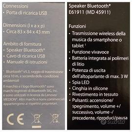 Cassa speaker bluetooth 5.3 Lenovo Medion, 3w, batteria ricaricabile ai polimeri di litio, raggio di trasmissione 10 metri disponibili: n.2