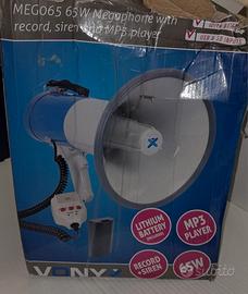 Megafono per manifestazioni all'aperto con microfono e possibilità di attacco con USB e con memoria per registrazioni.