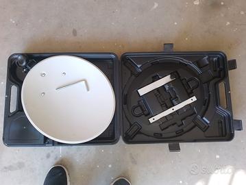 La valigetta include: 1 X Opticum Single LNB LSP-02G Premium universale con 0.1dB. 1 X connettore universale (10 m cavo coassiale, 2 X Connettori F, protezione dalle intemperie), 1 X 38 cm Megasat acciaio antenna completo (colore: Bianco/Grigio chiaro, 40 mm ingresso), 1 X stabile albero di montaggio, 1 X ventosa Per fissaggio, 1 X supporto da parete, 1 X bussola, 1 X Morsetto, 1 X robusta valigetta rigida, 1 X istruzioni di montaggio.