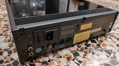 In ottime condizioni estetiche, completo di telecomando e manuali. Il lettore si accende e suona i CD ma ogni tanto emette degli scopiettii durante la riproduzione, necessita di una revisione.