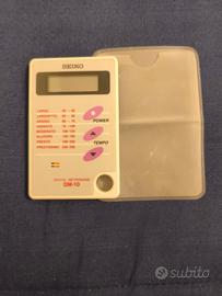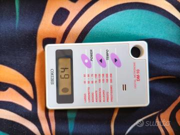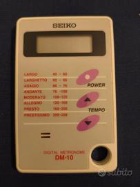 Vendo Metronomo digitale Seiko DM-10, modello vintage anni 80/90, compatto e leggero, ideale per musicisti di tutti i livelli. Perfettamente funzionante con display chiaro e pulsanti per regolare il tempo da 40 a 208Bpm. Riporta le classiche indicazioni italiane dei tempi (largo, andante, allegro ecc...) condizioni ottime usato 3/4 volte, marca giapponese nota per la qualità e precisione. Alimentazione a batteria e design tascabile con foro per cordino. 30€