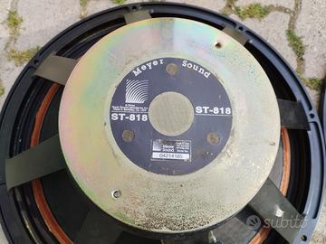 coppia di woofer Meyer Sound ST-818 con ancora imballi originali, vendo per passaggio ad altra tipologia di impianto Caratteristiche: dimensioni: 18" impedenza: 8 ohm Prezzo 300€ la coppia, vendo solo in coppia posso spedire in tutta italia con 30€ anche se non mi assumo la responsabilità di danni dovuti ai corrieri, pagamento paypal o bonifico Sul mio profilo ho molti altri annunci di materiale audio e luci