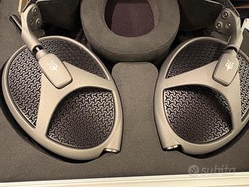 Meze Audio Elite Tungsten + CAVO Bilanciato 4 PIN SILVER PLATED + Supporto Manta Chrome PRODOTTO NUOVO MAI INDOSSATO APERTO COFANETTO SOLO PER FARE LE FOTO GARANZIA 24 MESI DISTORSIONE ULTRA BASSA La distorsione armonica totale (THD) misura sotto lo 0,05% nell'intera gamma di frequenze. LEGGERO Peso del driver combinato di 75 g progettato per creare una cuffia che offra sessioni di ascolto prolungate. AUDIO AD ALTISSIMA RISOLUZIONE Il limite di frequenza superiore della riproduzione audio è 112.000 Hz. RINARO PARUS® DIAFRAMMA Un innovativo diaframma acustico a bassa massa costruito su un film semicristallino ultrasottile orientato biassialmente. FACILE DA GUIDARE 101db@1mw/1kHz; 32Ohm; può essere pilotato da quasi tutte le sorgenti senza bisogno di amplificazione. TECNOLOGIA BREVETTATA ISODYNAMIC HYBRID ARRAY Una delle tecnologie magnetiche planari più sofisticate e avanzate al mondo. ARCHITETTURA DEL ISODYNAMIC HYBRID ARRAY DRIVER® Il driver MZ3SE si basa sulla tecnologia pionieristica del driver MZ3 di punta che si trova nelle cuffie Empyrean. L'innovativa tecnologia Isodynamic Hybrid Array offre prestazioni acustiche più selettive alle varie aree all'interno della struttura dell'orecchio. I progressi nei materiali del diaframma hanno aperto le porte a una risoluzione e un'accuratezza ancora più elevate della riproduzione del suono, stabilendo un nuovo punto di riferimento nel design delle cuffie. RINARO PARUS® UN NUOVO MATERIALE A MEMBRANA A BASSA MASSA Il nuovo driver dietro ELITE presenta Rinaro Parus®, un innovativo diaframma acustico a bassa massa costruito su un film polimerico semicristallino ultrasottile orientato biassialmente. Questo, combinato con la tecnologia Isodynamic Hybrid Array Driver, consente alle onde sonore di fluire liberamente oltre le orecchie e fuori, producendo una trasparenza del suono naturale e un palcoscenico ampio e articolato.