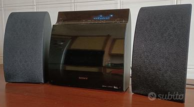 Vendo sistema micro Hi-Fi Sony HCD-CX5iP colore nero, completo di manuale d'uso, telecomando e accessori. Caratteristiche: Docking station per iPod/iPhone Lettore CD, riproduzione MP3, CD-R/RW Porta USB 2.0 Radio AM/FM Diffusori a due vie - Potenza totale 40 W. Possibilità di montaggio a parete. Perfettamente funzionante e in eccellenti condizioni. Dimensioni: larghezza totale 53 cm, altezza 25 cm, profondità 10 cm.
