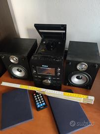 Modello NE-271 MICRO HI-FI SYSTEM, FM 88-108MHz, AM 530-1600KHz, AC 230V 50 Hz, 25W, usato, funzionante, il test: il lettore cd legge e riproduce sia i cd musicali che i cd mp3, la banda FM funziona, gli mp3 sulle chiavette usb vengono letti e riprodotti, il telecomando funziona, le casse acustiche funzionano, nessun altro test eseguito, condizioni e dimensioni desumibili dalle foto, offerto con la formula as-is, così come é, da venditore privato nessuna garanzia é offerta, altre info a richiesta, no manuali o imballaggi originali, il ritiro a costo zero in zona é sempre il preferito risparmiate voi non perdo tempo per imballaggi e file in posta io, prezzo trattabile nei decenti limiti, una volta spedito o consegnato, per nessun motivo accetterò restituzioni, chiedo cortesemente di fare offerte soltanto se veramente interessati e in accordo con quanto sopra, grazie.
