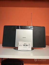Micro Sistema Hi-Fi Karcher - CD, Radio, USB e Bluetooth Vendo splendido micro sistema stereo della Karcher, marca tedesca nota per l'ottima qualità audio e il design curato. Un impianto completo, compatto ed elegante, ideale per il soggiorno, la camera da letto o la cucina grazie alla possibilità di installazione a muro. Funzioni e Connettività: • Lettore CD: Supporta CD, CD-R e CD-RW (anche con file MP3). Lo sportello è motorizzato per un tocco di classe in più. • Bluetooth: Per collegare lo smartphone e ascoltare la musica da Spotify, YouTube o Tidal senza fili. • Radio FM/DAB+: [Controlla se il tuo ha il DAB+, altrimenti scrivi solo Radio FM RDS] con stazioni memorizzabili. • Porta USB: Per riprodurre la tua musica direttamente da chiavetta. • Design Ultrasottile: Può essere posizionato sul suo supporto circolare (incluso) o appeso direttamente alla parete come un quadro. Qualità Audio: • Altoparlanti stereo integrati con una resa sonora pulita e bilanciata. • Dotato di diverse impostazioni di equalizzazione predefinite. Stato del prodotto: • Condizioni: [Pari al nuovo / Eccellenti]. Come si vede dalla foto, è stato tenuto con estrema cura. • Funzionamento: Perfetto in ogni sua parte, lettore CD fluido e connessione Bluetooth istantanea. • Estetica: Colore argento/nero, molto moderno e minimalista.