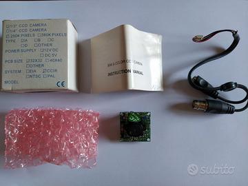 Microcamera Eurogroup, 1/3" ccd camera, 250k pixels, type A, 12v, pcb size 32mm x 32mm, nuova.