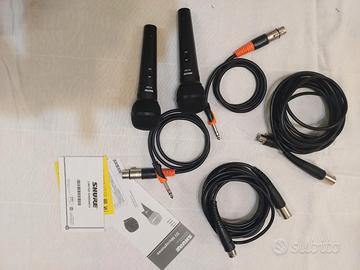 2 microfoni dinamico: SHURE SV200 VOCAL completi di 2 cavi mt. 5 con 2 adattatori jack usati in sola 1 occasione all’anno, per due anni consecutivi poi l’evento per cui doveva servire non è più stato fatto, praticamente nuovi con istruzioni e imballo originale.