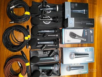 Vendo 6 microfoni: AKG D5/AKG P5S/due SENNHEISER 835E/due SHURE SM58beta per cori bend ecc. completi di cavo XLR 5 mt. filtro anti vento supporto per asta. in blocco. NON SPEDISCO. Stefano 3403558565.