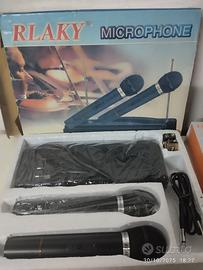 n° 2 MICROFONI RLAKY senza filo con sistema wireless n° 2 MICROFONI LINQ con cavo da mt5 nuovi mai usati n° 1 MICROFONO wireless APORO 2.4G. PREZZO POCO TRATTABILE