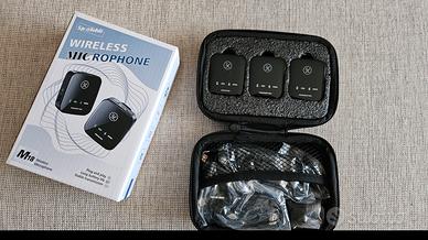 Microfoni di qualità, professionali e MAI UTILIZZATI. WIRELESS Dotati di un ricevitore e 2 trasmettitori, cavi utili e necessari e custodia protettiva