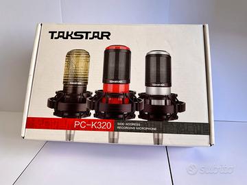 - 2x TAKSTAR mod. PC-K320: microfono PC-K320 è a condensatore cardioide pensato principalmente per attività di podcast e registrazioni con il PC. La capsula ad elettrete ad alte prestazioni consente all'utente registrazioni pulite e dettagliate della voce. venduti con supporto e tre piedi nella confezione originale con libretto istruzioni. Prezzo €40.00 cad.