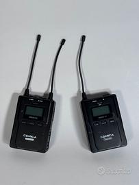 Vendo Comica CVM-W200(C), kit microfoni wireless UHF dual-channel, perfetto per interviste, video, vlog, eventi e produzione contenuti.