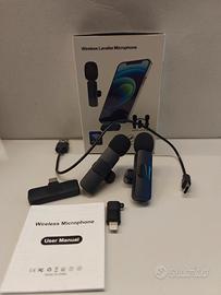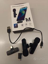 Microfoni Lavalier professionali con 2 trasmettitori e 1 ricevitore. questo doppio set di microfoni supporta la registrazione simultanea dell'audio da 2 parti, perfetto per condividere 2 persone in live streaming, YouTube, registrazione video, vlog ed interviste. può essere utilizzato anche un solo microfono. Aperto e mai usato.