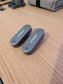 Vendo sistema microfonico wireless professionaleSynco G3in condizioni pari al nuovo. Acquistati ad inizio 2024 ed usati solo poche volte. È la soluzione definitiva per content creator, videomaker e podcaster che cercano qualità audio cristallina e massima versatilità. Caratteristiche Principali: Sistema 3-in-1:Il ricevitore funge anche da microfono e da base di ricarica/trasmissione. Registrazione Integrata:Ogni trasmettitore ha una memoria interna per registrare audio di backup (fino a 44 ore), evitando perdite di segnale. Monitoraggio in tempo reale:Jack per cuffie per controllare l’audio durante le riprese. Compatibilità Universale:Funziona perfettamente con fotocamere (Mirrorless/DSLR), smartphone (iOS/Android) e computer tramite USB-C. Mixer Audio Integrato:Gestione dei guadagni e degli effetti direttamente dal ricevitore con display LCD a colori. Cosa è incluso nella confezione: 1 Ricevitore (RX) 2 Trasmettitori (TX) Cavi di collegamento (USB-C, TRS da 3.5mm) Custodia in stoffa