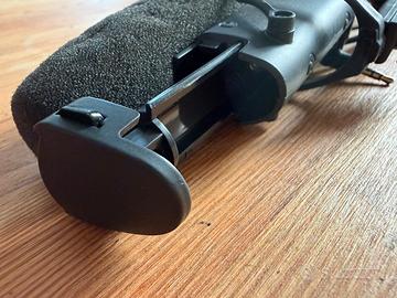 Caratterizzato da un'ampia gamma di frequenze, elevata sensibilità, auto-rumore estremamente basso e una risposta full low end, il VP83 offre facilmente una riproduzione audio naturale e piena di qualità. Un pattern supercardioide assicura prestazioni fluide, rifiutando il suono fuori asse per concentrarsi direttamente sulla sorgente principale del suono. Lo stretto schema di pickup funziona con un eccezionale sistema di montaggio su parabrezza e ammortizzatore per fornire un suono complessivo privo di vibrazioni. Per mia esperienza se vi trovate a registrare in ambienti estremamente rumorosi, utilizzate semplicemente l'interruttore di guadagno audio a tre posizioni sul retro del microfono. L'interruttore offre la possibilità di commutare tra -10 dB, 0 dB e +20 dB in modo da poter modificare i livelli a seconda del livello di volume delle diverse sorgenti sonore. Robusto, robusto e leggero Progettato per l'uso con fotocamere DSLR, videocamere e registratori digitali portatili, il microfono a condensatore shotgun offre una protezione completa. Il sistema di montaggio integrato Rycote Lyre shock assicura l'isolamento dalle vibrazioni e da qualsiasi rumore meccanico. VP83 LensHopper VP83 Camera-monitoring microfono a condensatore Audio dettagliato ad alta definizione Supercardioide modello polare Comandi facilmente accessibili sul retro del microfono Sistema integrato Lyre shock mount system & connettore audio da 3,5 m Supporto per slitta di dimensioni standard con base filettata da 1/4". Costruzione interamente metallica Tipo di trasduttore: Condensatore Risposta in frequenza: Su misura, 50Hz - 20kHz Sensibilità: -36.50 dBV/Pa -14.90 mV/Pa Rumore equivalente auto-rumore: 17.4 dB Pressione sonora: 129 dB Modello Polare: Supercardioide/Lobar Impedenza di uscita: 171 Ω Connettori: Jack da 3,5 mm Requisiti di alimentazione: 1 batteria AA Durata della batteria: 130 ore Peso: 133 g Dimensioni Altezza: 150 mm Larghezza: 84 mm Profondità: 43 mm Buon usato Prezzo 120€