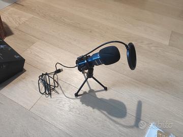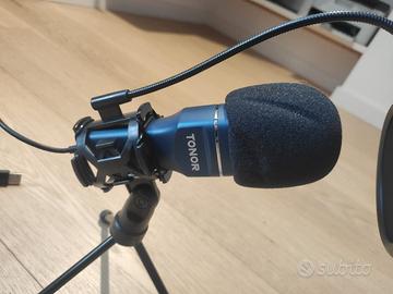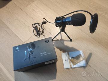 Vendo per inutilizzo microfono a condensatore USB TONOR TC-777, completo di tutti gli accessori originali: treppiede da tavolo e filtro anti-pop. Condizioni: L'articolo è stato usato pochissimo, praticamente come nuovo, senza segni di usura. Caratteristiche: È un microfono "plug and play" (si collega e funziona immediatamente) tramite USB, ideale per gaming, streaming, podcasting, registrazioni vocali e chiamate. Compatibile con PC, laptop, PS4/PS5, ecc. Qualità audio: Offre una capsula a condensatore con pattern di acquisizione cardioide, che cattura la voce in modo pulito e chiaro, minimizzando i rumori di fondo. Contenuto della confezione: Microfono TONOR TC-777 Treppiede pieghevole Filtro anti-pop Cavo USB integrato