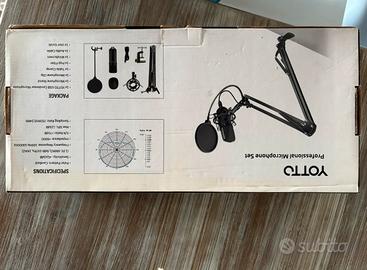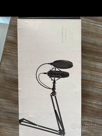 Microfono ottimo per podcast e streaming, completo di tutti gli accessori in foto