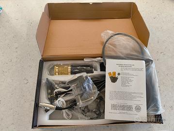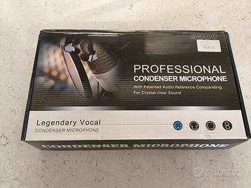 vendesi kit per microfono a condensatore professionale "Legendary Vocal". Microfono a condensatore professionale con tecnologia "Audio Reference Companding" brevettata per un suono nitido. Utlizzo:Ideale per studi di registrazione domestici, podcasting, live streaming e registrazione di voci. Caratteristiche:Basso rumore di fondo, elevato livello di pressione sonora e ammortizzatori elastici integrati per ridurre il rumore di manipolazione.