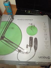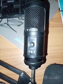 vendo per inutilizzo microfono di colore nero con asta regolabile e reclinabile, cuffia anti soffio,cavi USB,ethernet 150cm, compatibile con PC e ps5 spedizione a carico di chi acquista. fornito di scatola e imballaggio.