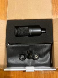 Vendo microfono AudioTechnica AT2020 usato pochissimo e perfettamente funzionante. Il microfono anche esteticamente non presenta segni di usura. Presente la confezione originale con supporto e pochette.