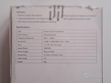 Il Saramonic SR-XMS2 è un microfono a clip Lavalier stereo cardioide ideale per interviste e registrazioni video con DSLR, mirrorless e registratori audio. Consente di registrare l’audio direttamente in camera con chiarezza broadcast. Il cavo extra lungo da 6 metri con jack TRS 3,5mm offre massima libertà di movimento. Include clip di fissaggio e filtro antivento, perfetto per interviste, podcast e presentazioni lasciando le mani libere.